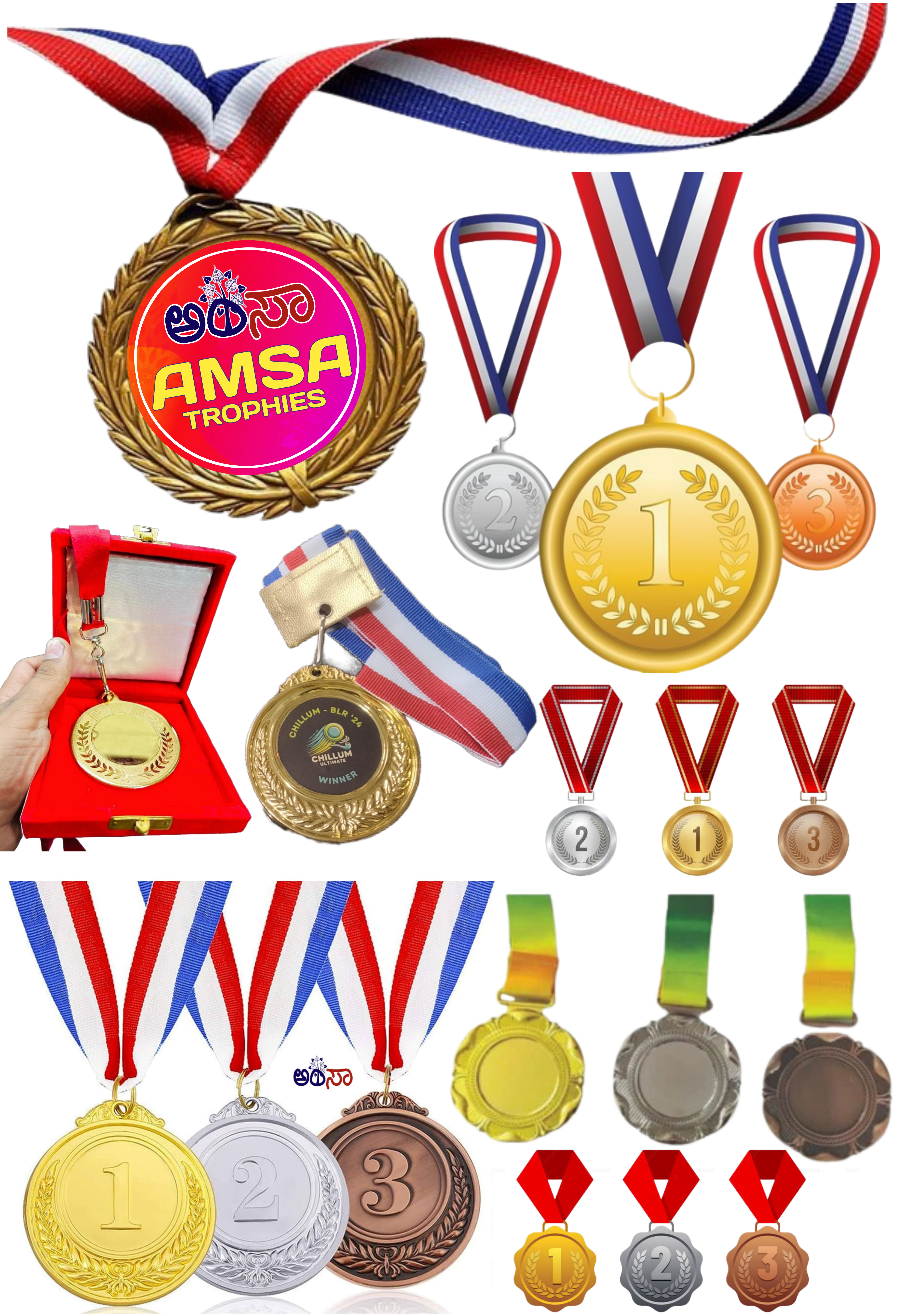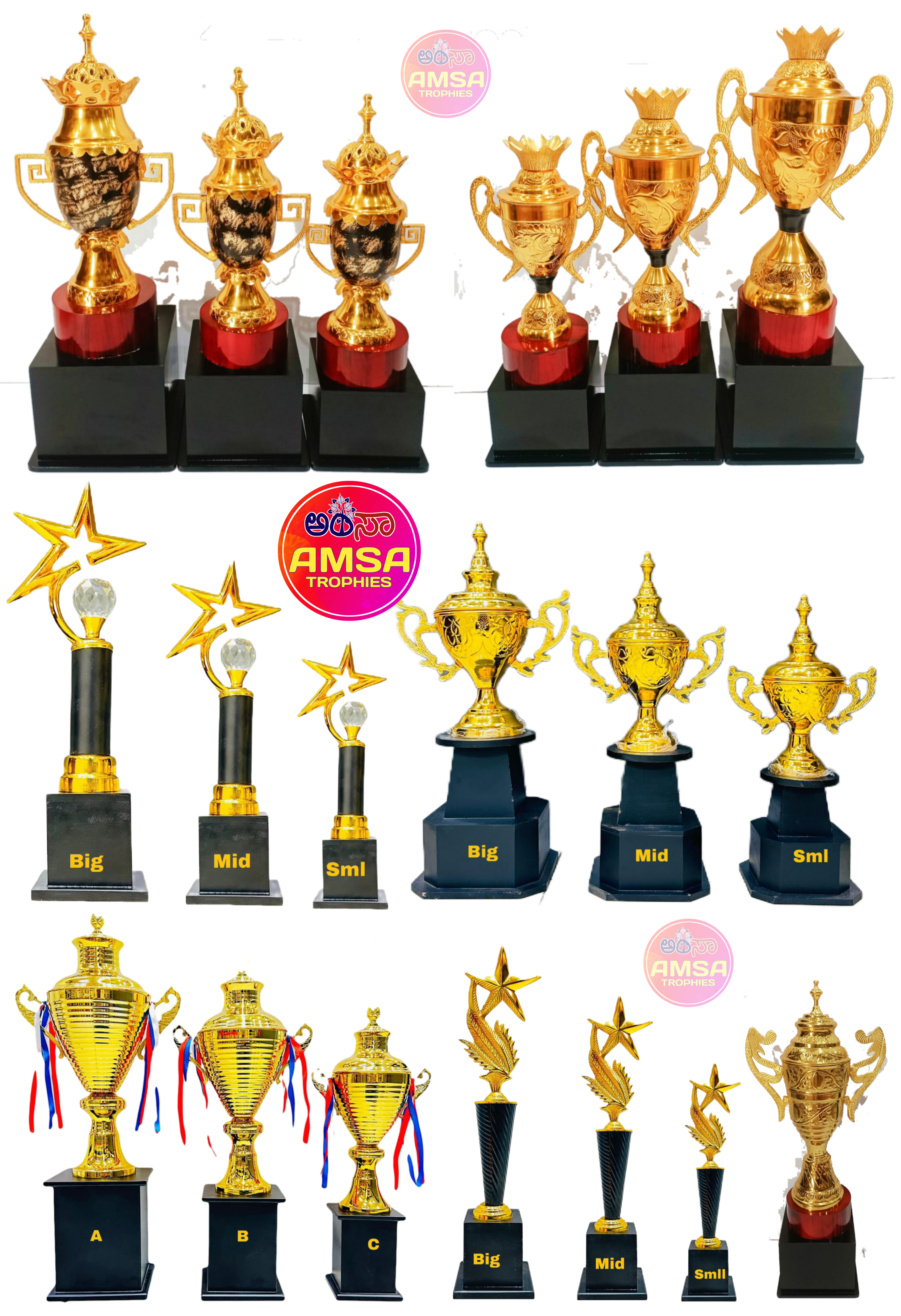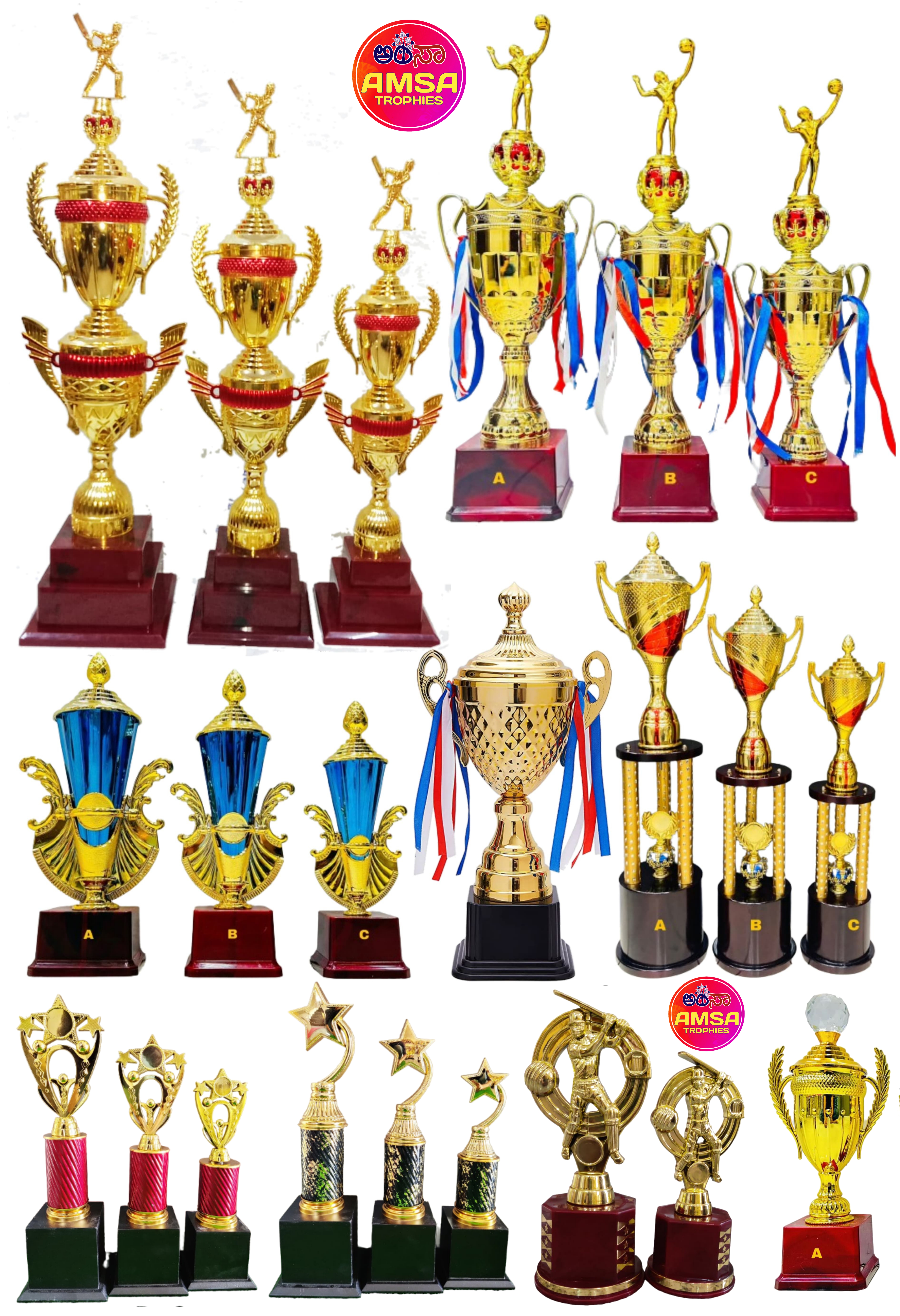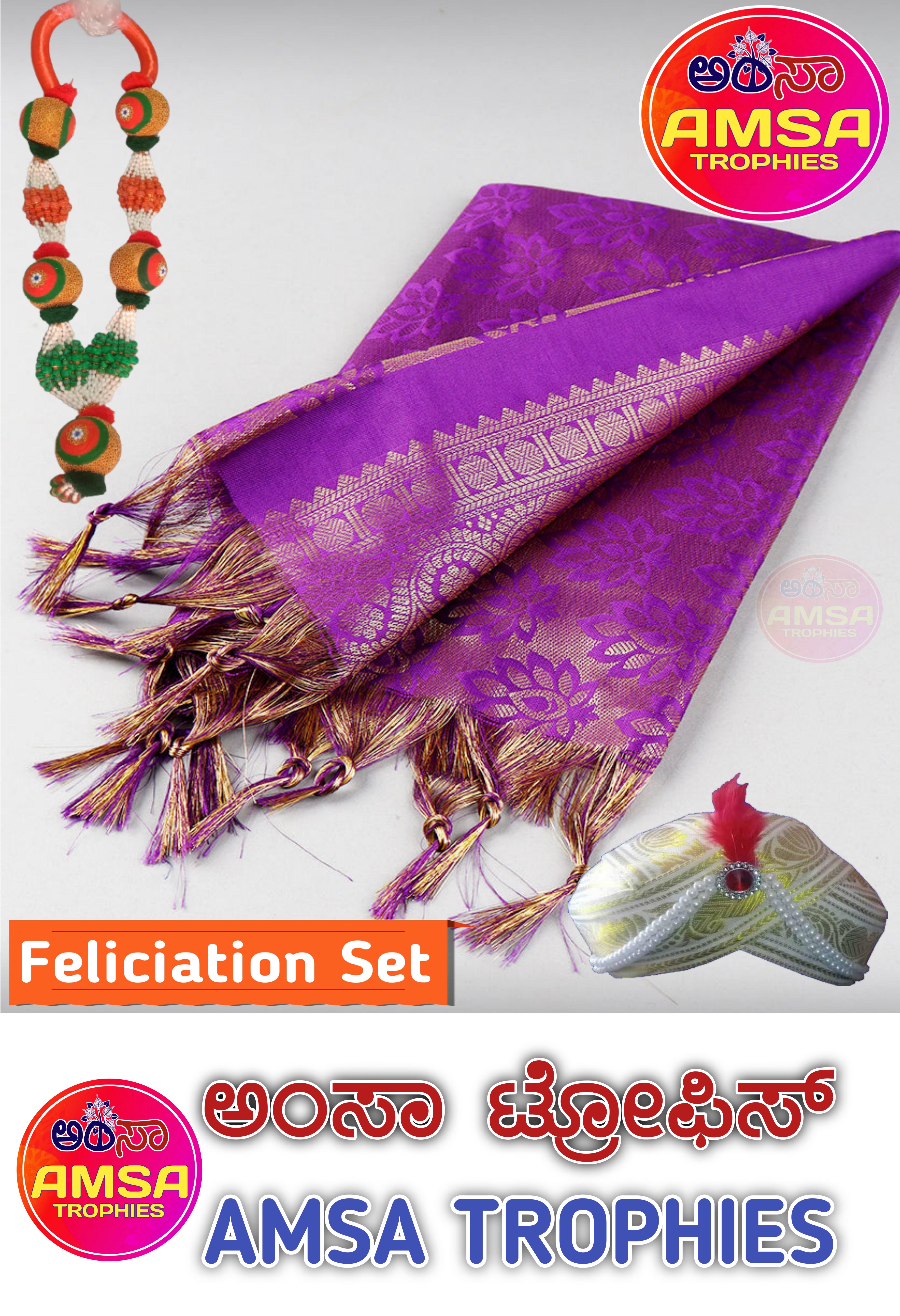 AMSA TROPHIES is a Leading Wholesaler & Retailer of High-Quality Trophies, Mementos, Awards, Plaques, Medals, Button Badges, Ribbon Badges, Certificates and more. Our extensive range also includes Shawls, Shalya, Mani/Cardamom Garlands, Mysore/Fancy Peta, Photo Frames, Table Top Live Plants, Flags, Corporate Gifts, Books, T-Shirts, and Sporting Goods & many more.