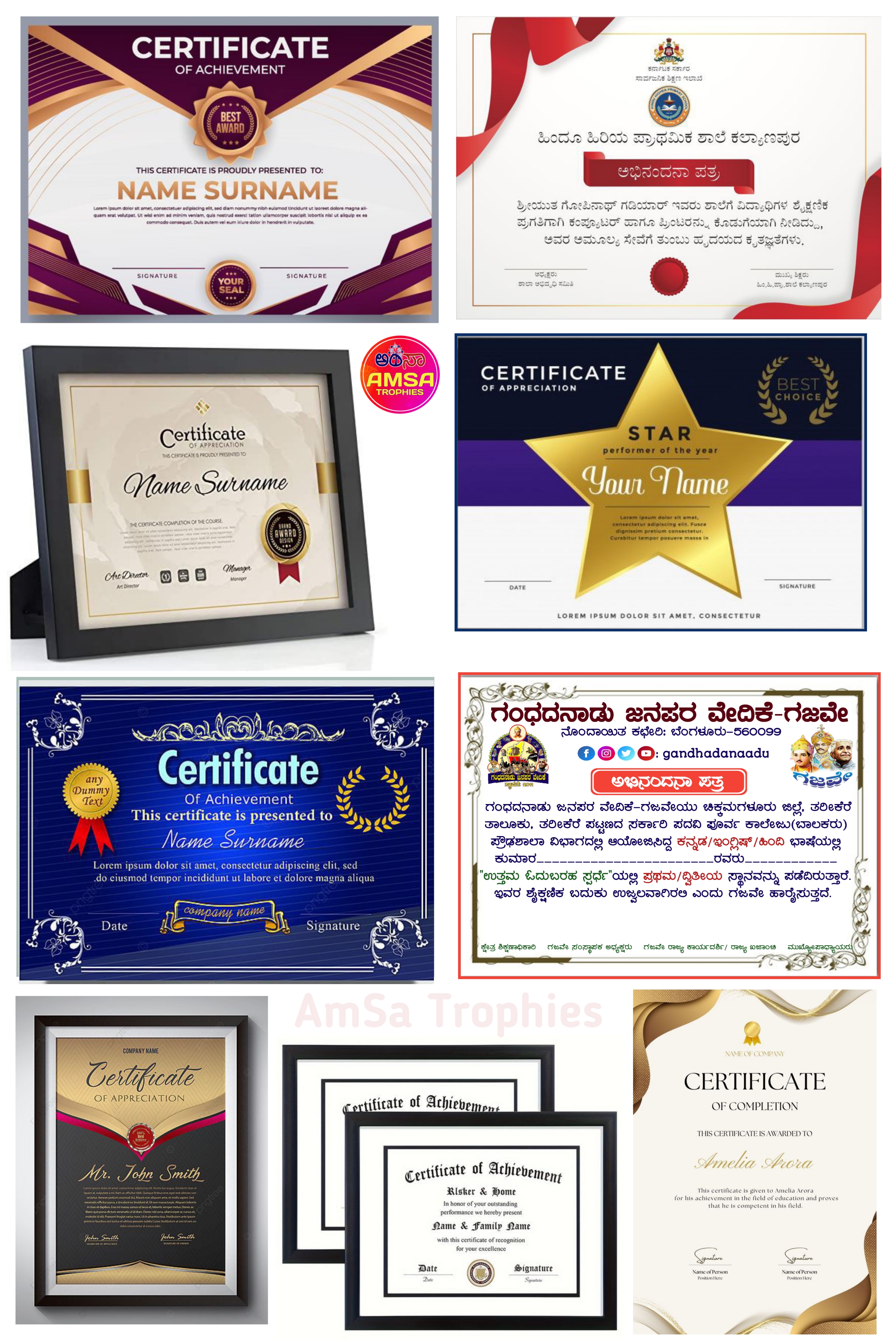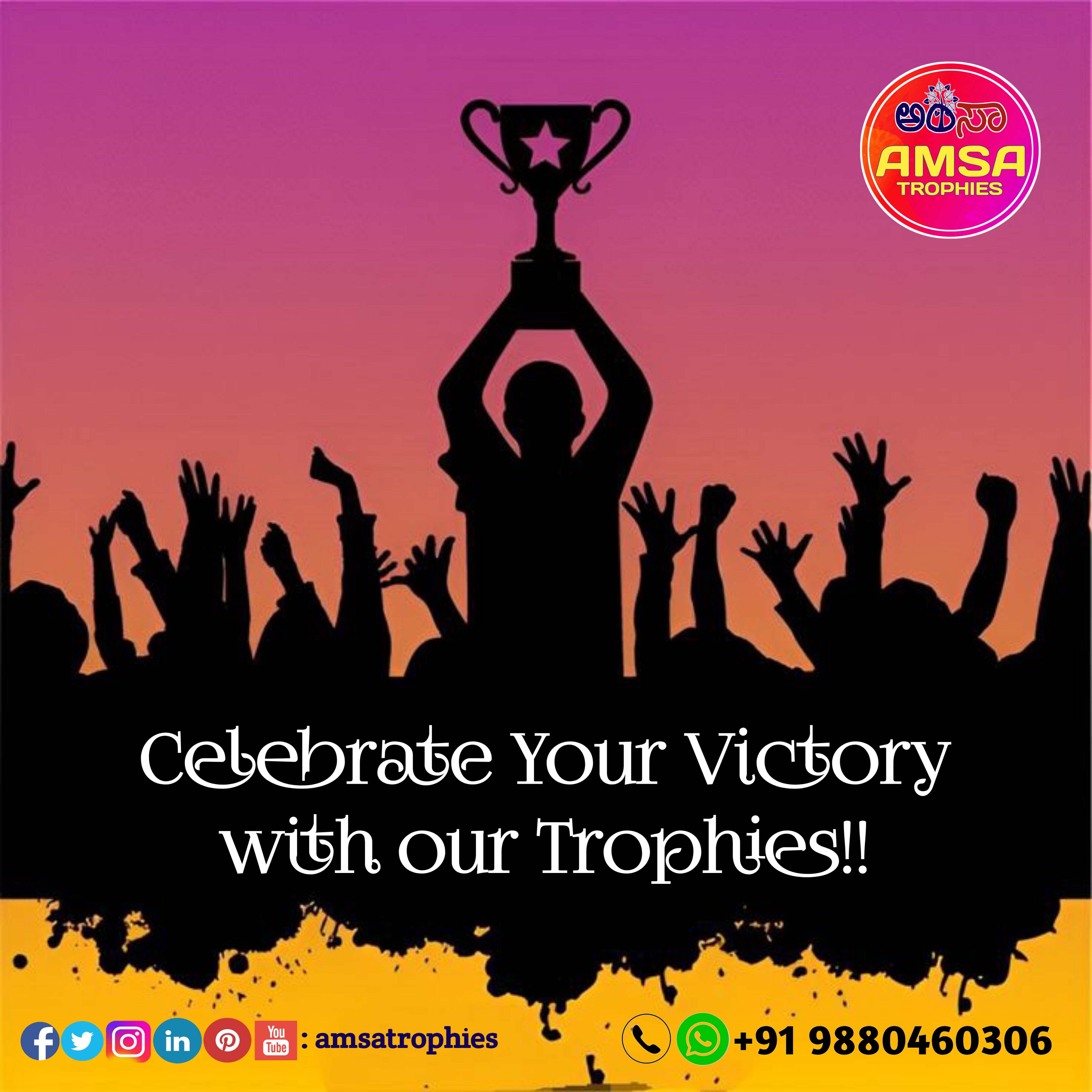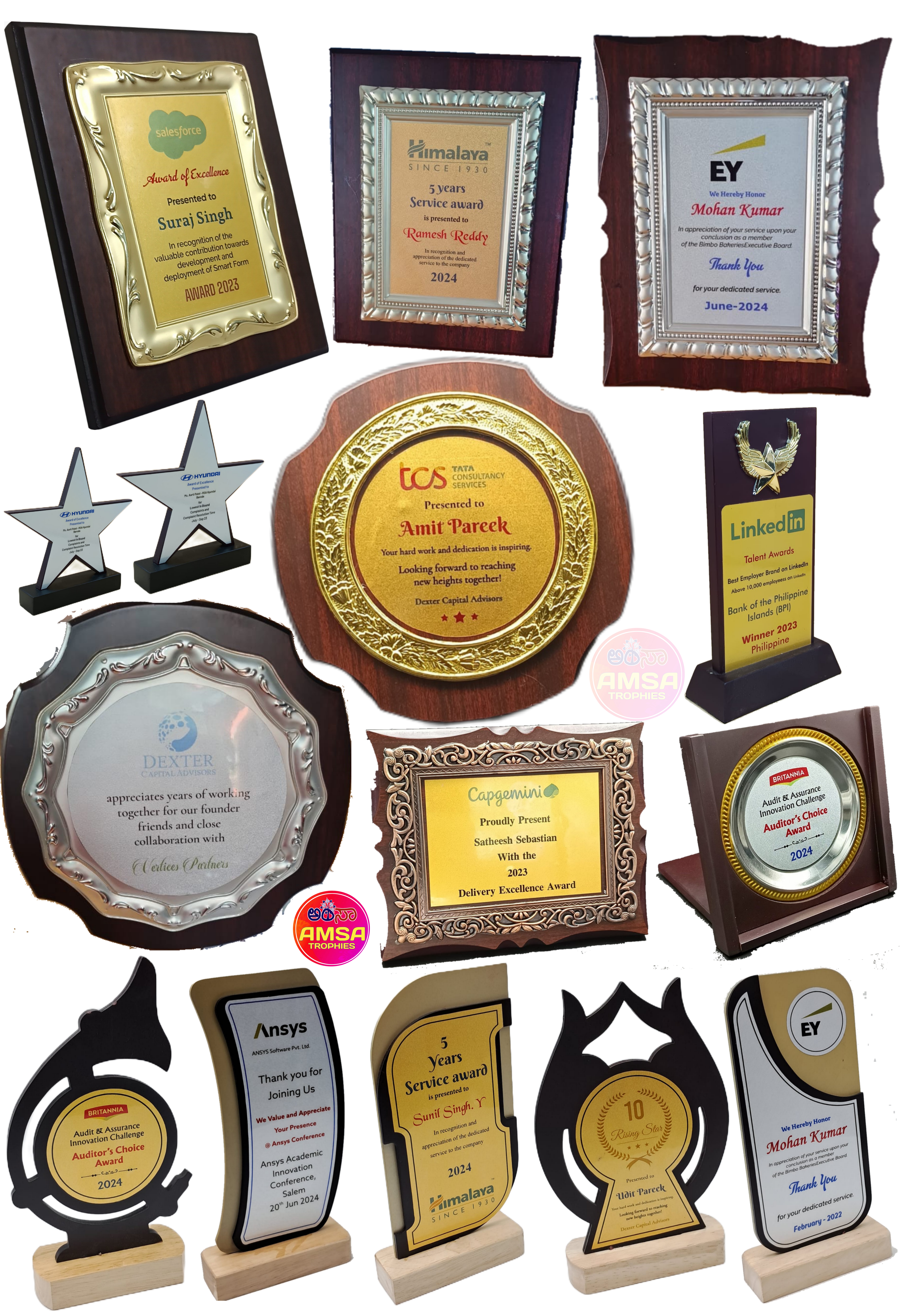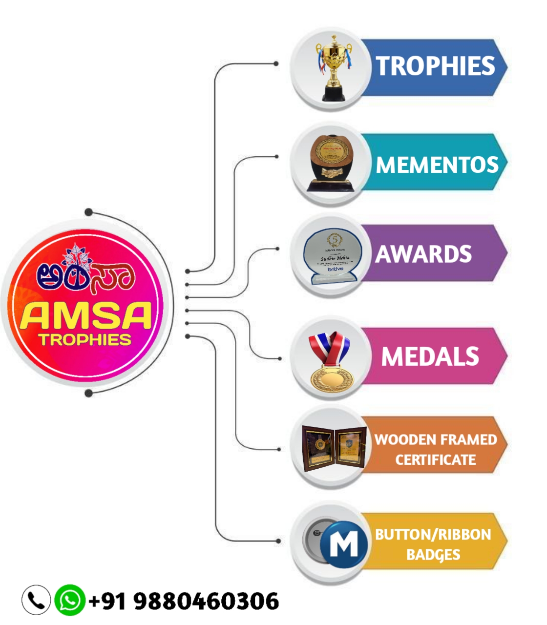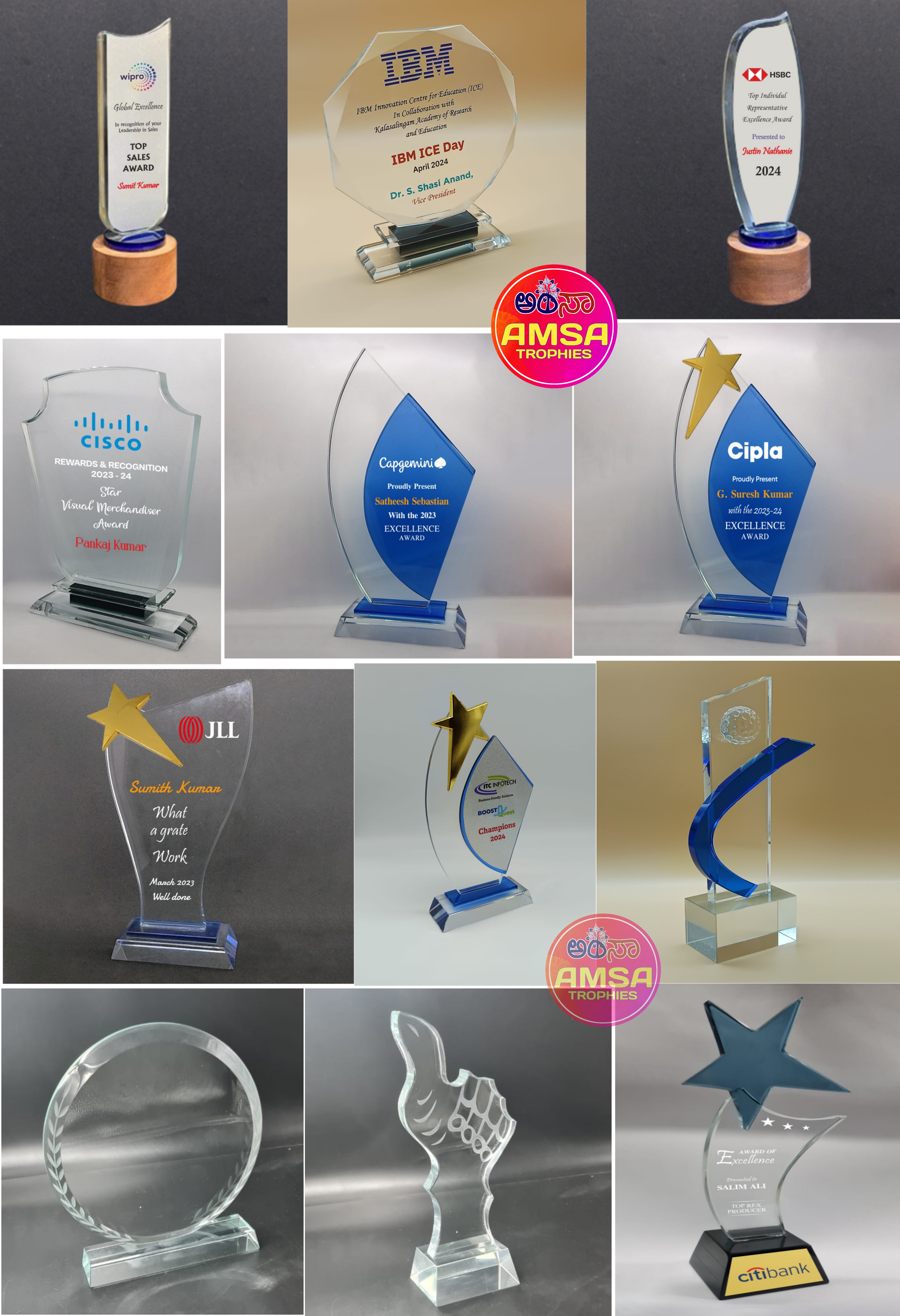 AMSA TROPHIES is a Leading Wholesaler & Retailer of High-Quality Trophies, Mementos, Awards, Plaques, Medals, Button Badges, Ribbon Badges, Certificates and more. Our extensive range also includes Shawls, Shalya, Mani/Cardamom Garlands, Mysore/Fancy Peta, Photo Frames, Table Top Live Plants, Flags, Corporate Gifts, Books, T-Shirts, and Sporting Goods & many more.